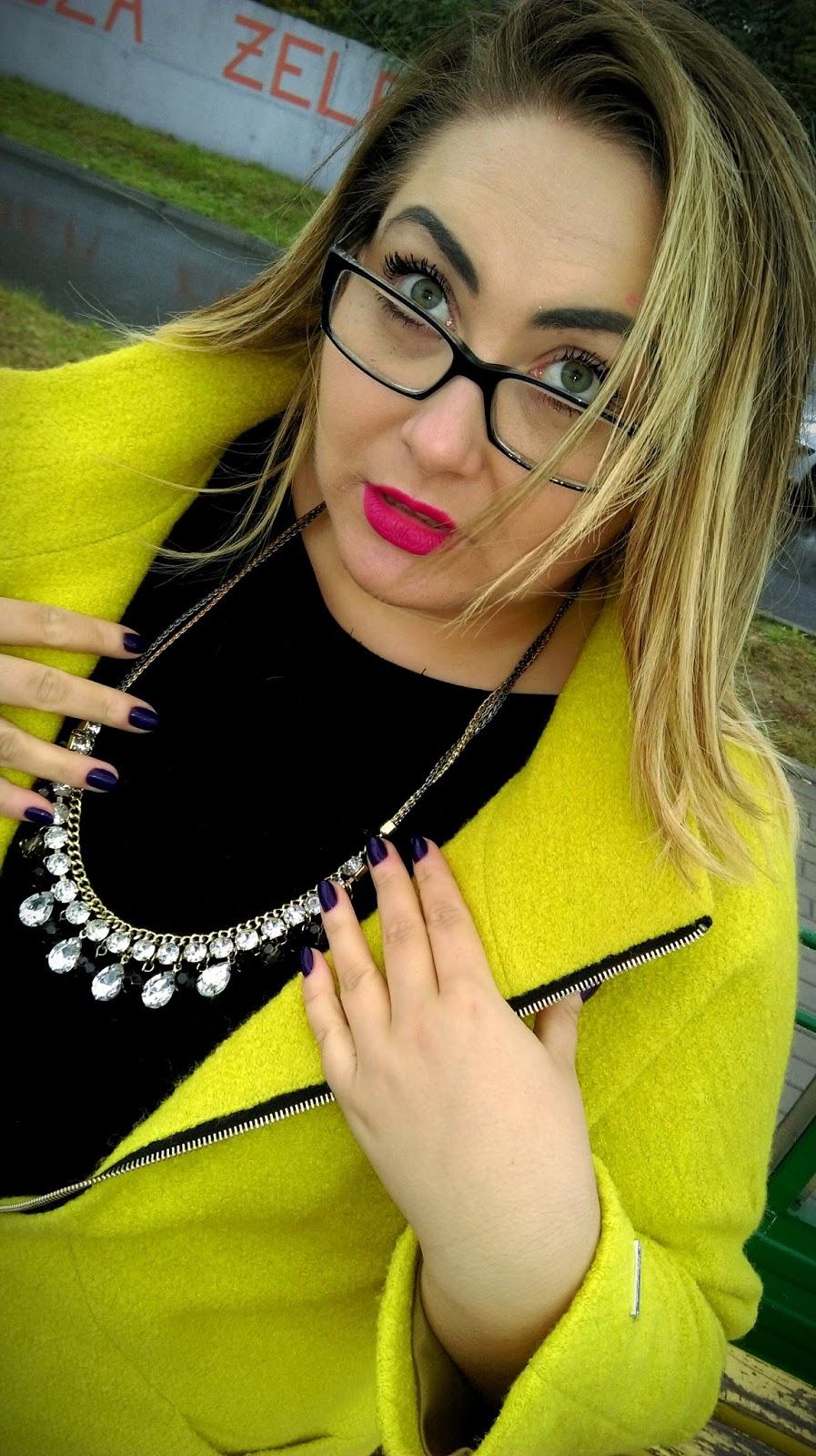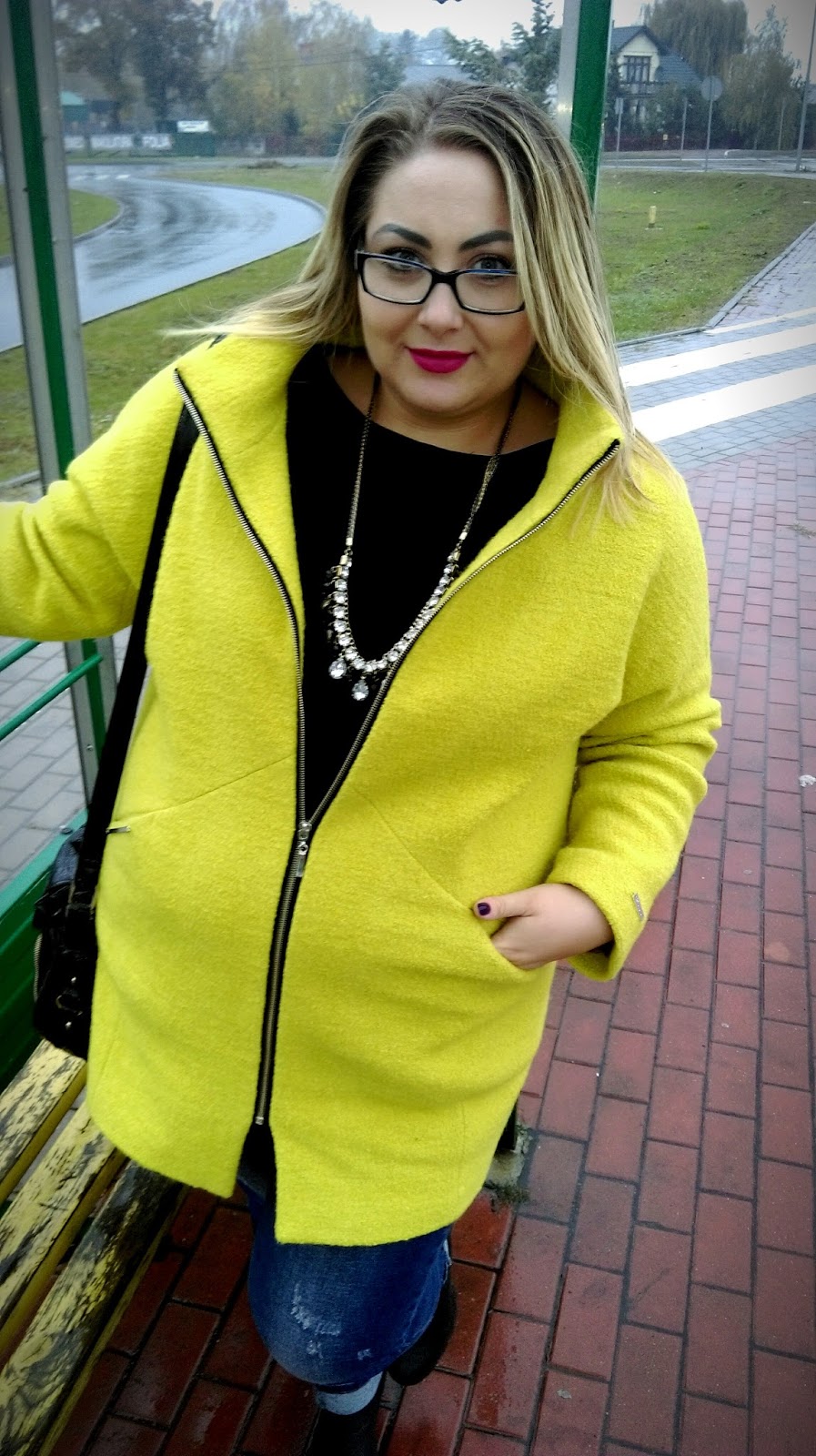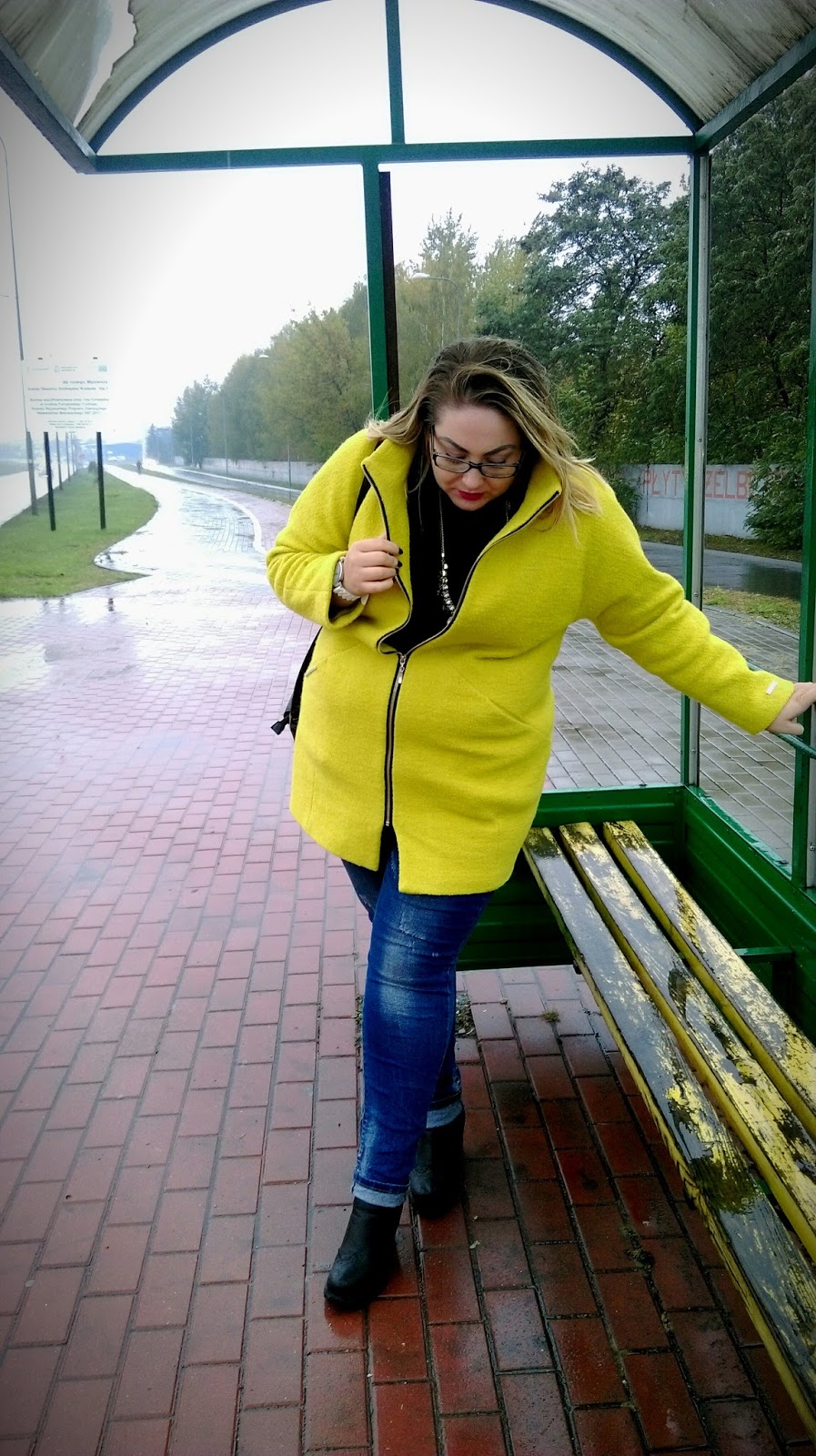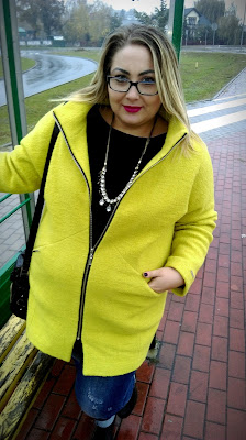 Kurtka idealnie pasuje do wszelkiego rodzaju stylizacji, ale ja wybrałam przecierane, delikatnie cieniowane jeansy i czarny top, które rewelacyjnie kontrastuja z żółtym płaszczykiem ;)Bucik na stabilnym słupku i Twój #citylook jest gotowy 😉 Konieczne podkreśl go jakimś pazurem- ja lubię blyskotki 😉 trochę jestem sroką 🙂